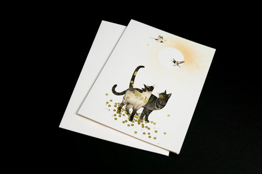Two Cats and Birds Foil Embossed Cards