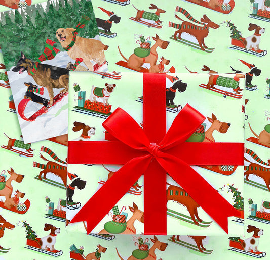 Sleigh Dogs Holiday Gift Wrap, 2 Rolls