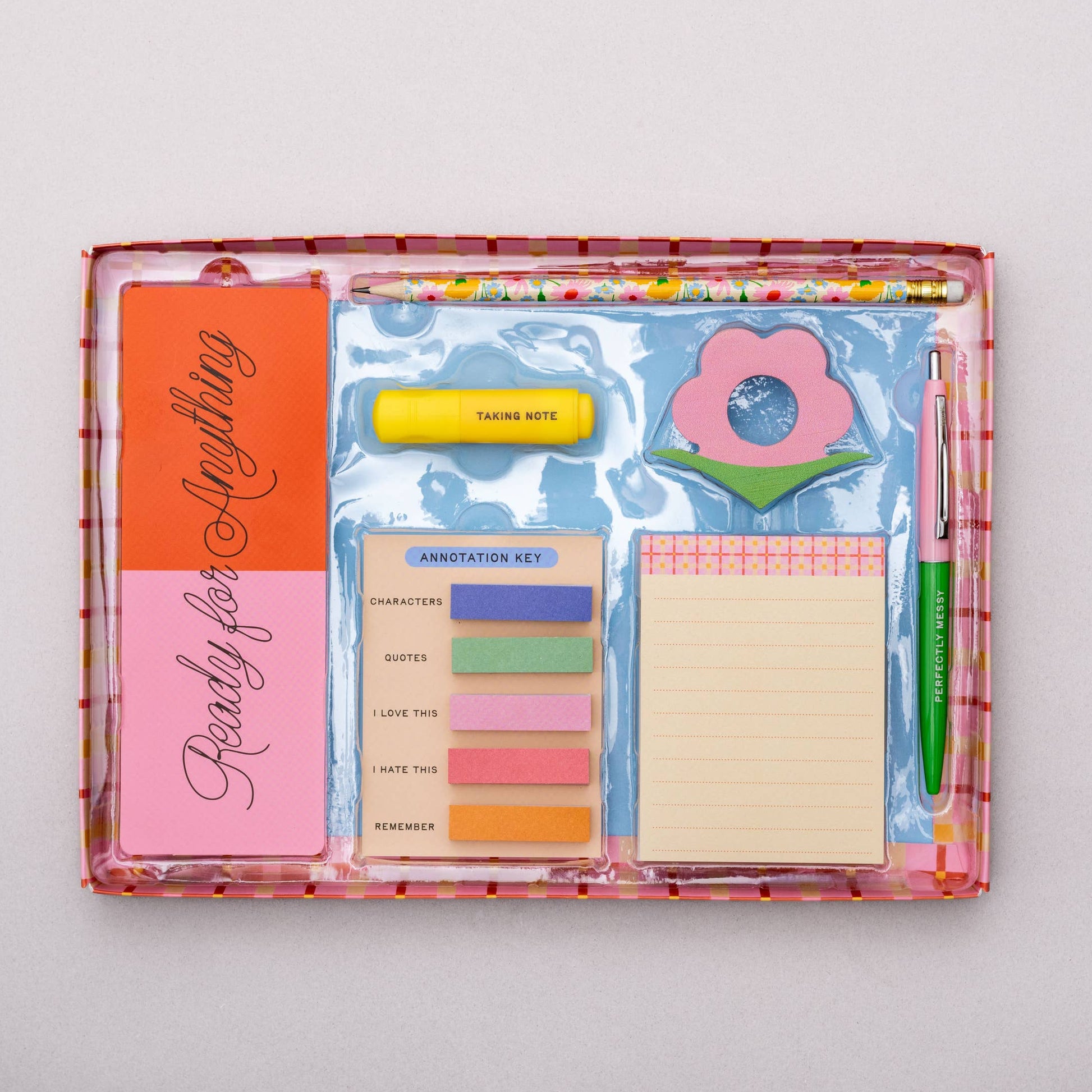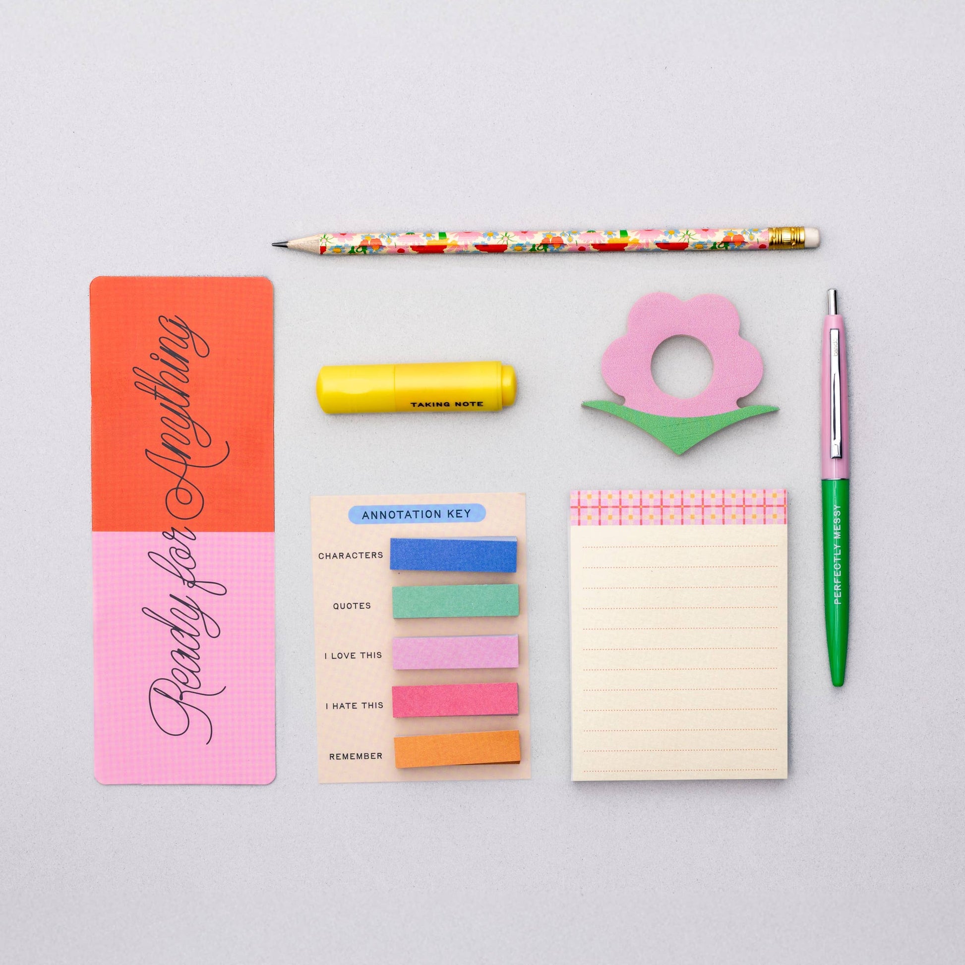 - Features: Includes a book holder, bookmark, sticky flags, and more